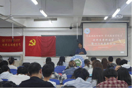出席此次会议的师生有材料与环境学院党总支书记张飞鹏老师、材料科学与工程系副主任王洪涛老师、双语骨干教师王雪飞老师、全体辅导员以及有考研意向的学生共200余人。大会由材料与环境学院分团委书记刘武辉老师主持。