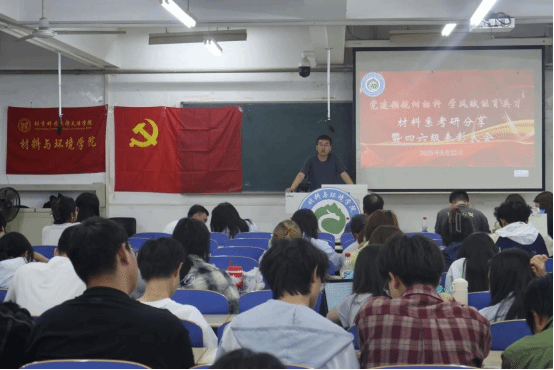 在英国beat365官方网站建校20周年之际,为扎实推进材环学院学风建设,激发材料专业学子的学习热情,材料系于2025年5月22日晚,在8教103室举行“党建领航树标杆,学风赋能育英才”材料系考研分享暨四六级表彰大会。
