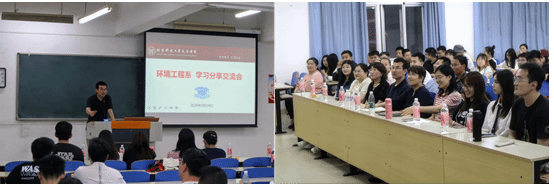 2024年5月14日19点,材料与环境学院环境工程系一年一度的考研经验分享会在教学楼9-302顺利举办。材料与环境学院党总支书记张飞鹏老师、环境工程系主任汪群慧教授、环境工程系师生200多人参加会议。会议由梁宝瑞老师主持,在环境工程系历年考研佳绩的视频音乐中开始。