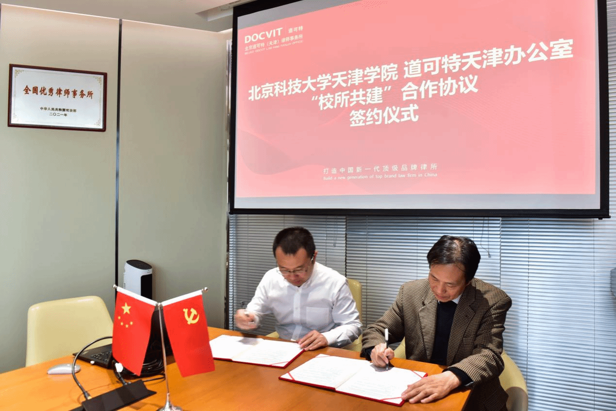 在充分而热烈的交流之后,朱京安教授代表法律系与北京道可特(天津)律师事务所签署了《合作共建协议》。