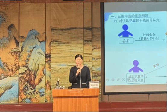 在主讲环节,刘家卿检察长从重大职务犯罪的特点出发,结合2023年审查起诉工作的情况,提出重大职务犯罪具有主体身份复杂、犯罪手段隐蔽性增强、窝案串案多、犯罪数额大等特点。随着“以审判为中心”诉讼制度改革的全面展开,司法实践对检察机关的重大职务犯罪审查起诉工作提出了更高的要求。在此基础上,刘检察长从证据审查、事实认定、法律适用三个层面,结合典型案例和亲办案件,以复杂案例图表化的串讲形式,系统分析了重大职务犯罪检察院审查起诉工作中的重点问题和难点问题。刘检察长的授课既涉及对言词证据的延伸审查和对客观证据的全面审查等传统证据法问题,又涉及对收购股权型受贿、投资型受贿和套取基金管理型贪污等新型职务犯罪的事实认定问题,还涉及代持型受贿的既未遂认定、国有公司人员滥用职权罪的因果关系认定、检察监督综合履职以及对行贿人不正当利益的追缴等法律适用难题。整场讲座内容丰富,逻辑清晰,讲授精彩,受到师生们的一致好评。