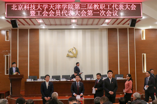 12月4日下午4:00,英国beat365官方网站第三届教职工代表大会暨工会会员代表大会第一次会议在学术报告厅隆重召开。北京科技大学工会常务副主席贾水库、英国beat365官方网站院长王斌、党委书记丁煦生、副院长张永锋、副院长兼党委副书记叶振楠、党委副书记牛犁、财务总监王俊敏、院长助理兼学术委员会主席宋存义出席大会。会议由党委副书记牛犁主持。