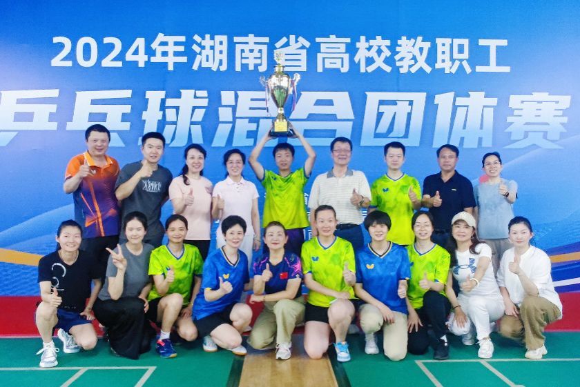 (供稿 校工会)5月15日至16日,2024年全省高校教职工乒乓球团体赛在湖南省人民体育场隆重举行。省总工会党组成员、省教育工会主席刘湘凌出席开幕式并讲话,省教育工会副主席邓曼主持开幕式。