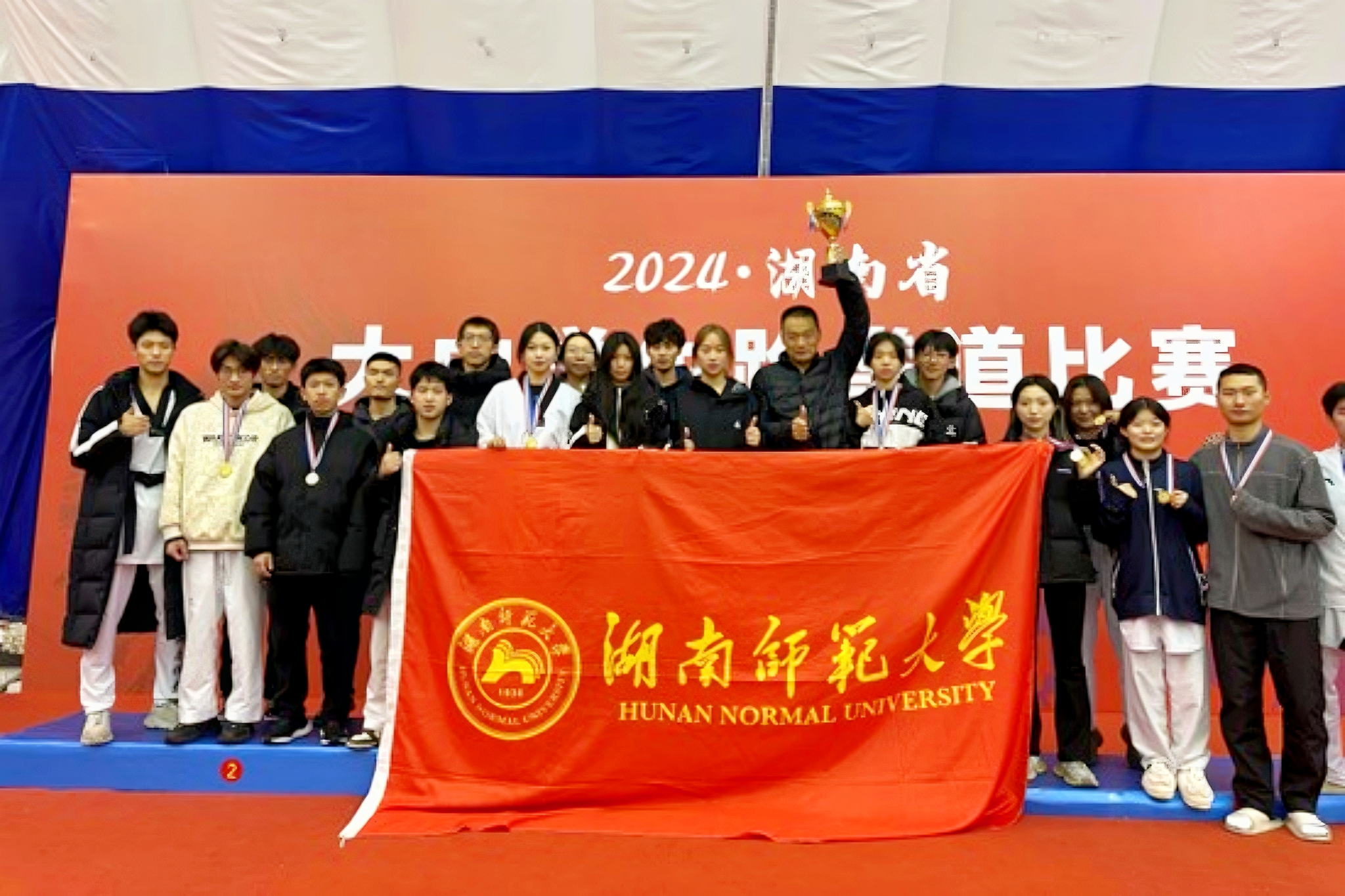 (通讯员 曹菁遥)12月1日至6日,由湖南省教育厅主办,湖南体育职业学院承办,湖南省学生体育协会协办的2024年湖南省大中学生跆拳道比赛在湖南体育职业学院举行。太阳成集团队员共斩获8金、9银、10铜,并取得本科丙组竞技团体总分第一名、丙组品势团体总分第二名的优异成绩。