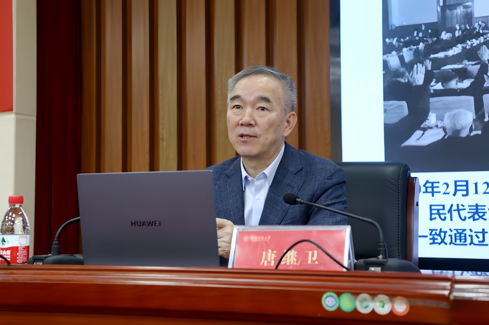 唐继卫以“贯彻落实《中华人民共和国学位法》(以下简称《学位法》),加快建设研究生教育强国”为题作了系统而深入的解读。唐继卫指出,《学位法》的出台是我国学位制度现代化进程中的重要里程碑,为各级各类学位教育的科学发展提供了坚实法律保障。针对研究生教育在新时代的改革方向,他重点强调了专业学位研究生教育的战略地位,指出其在支撑国家发展、行业领域中发挥着不可替代的作用。唐继卫结合地方高校的特点与发展机遇,提出要把握《学位法》赋予的自主权,加强行业参与,推动科教融合,进一步优化学科结构和人才培养体系,切实提升研究生教育质量与育人实效,发挥好高校服务区域经济发展的实际作用。