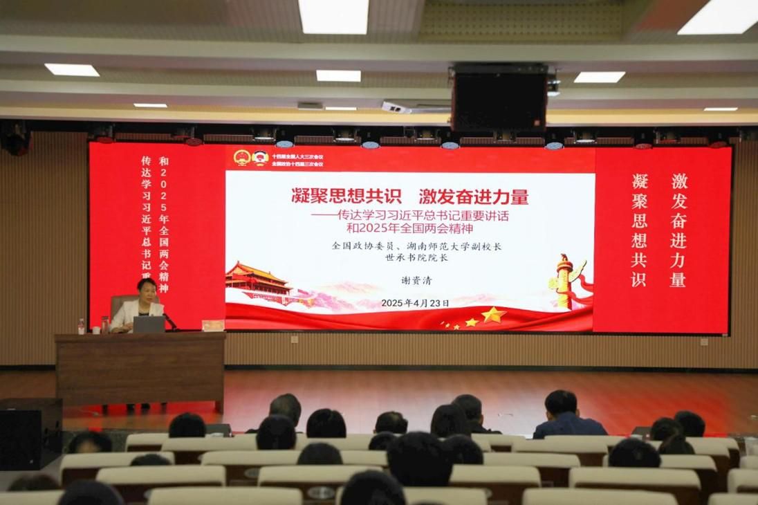 (通讯员 刘英)近日,为深入贯彻落实2025年全国两会精神,全国政协委员、副校长谢资清深入学院和职能部门,开展“两会”精神宣讲活动,在校园内掀起学习热潮。