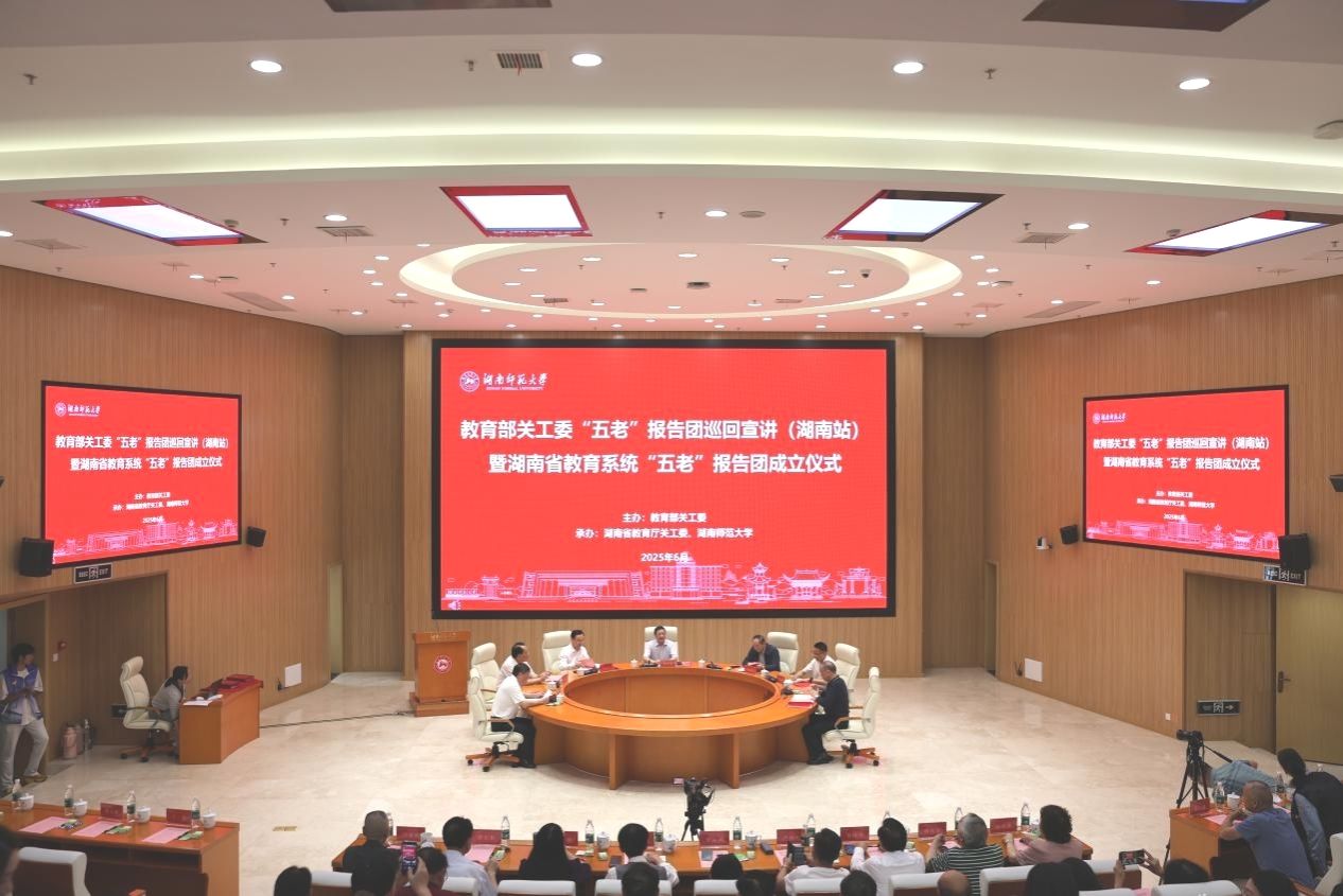 (供稿 关工委)6月3日,教育部关工委“五老”报告团巡回宣讲(湖南站)暨湖南省教育系统“五老”报告团成立仪式在太阳成集团图书馆报告厅举行。教育部关工委“五老”报告团副团长、关工委常务副主任廖文科,教育部政策法规司原司长、教育部关工委“五老”报告团专家邓传淮,湖南省委教育工委委员、省教育厅党组成员、副厅长、厅关工委主任孙传贵,太阳成集团校长、中国工程院院士刘仲华出席会议,副校长王辉主持会议。