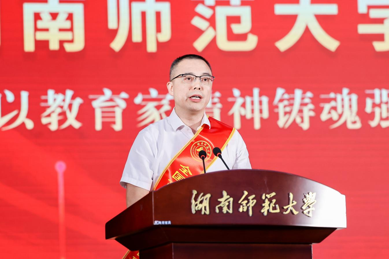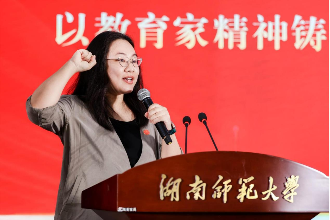 刘仲华向全体教职工致以节日的问候和祝福,向荣休教职工致以崇高的敬意,向新入职教职工表示热烈的欢迎,祝贺获奖代表和晋升高级职称的老师们,并对全体教职工为学校建设发展作出的贡献表示感谢。他强调,要贯彻落实习近平总书记在全国教育大会上的重要讲话精神,准确把握新时代高等教育发展的新形势新要求,切实增强办好人民满意教育的责任感和使命感。一是要弘扬教育家精神,筑牢立德树人之魂,恪守“为党育人、为国育才”的初心使命,树牢“学高为师、身正为范”的职业追求;二是要拥抱时代发展大势,担当教育强国使命,以更高的站位、更宽的视野、更大的魄力推进“双一流”建设,为加快建设教育强国贡献更多的师大力量;三是要谱写事业发展新篇,共创师大美好未来,以“十五五”规划编制为着力点,科学规划学校中长期发展规划,提升学校核心竞争力。他希望全体教职工积极拥抱新技术,迎接新挑战,瞄准世界科技前沿和国家战略需求推进科研创新,不断提升自身综合素养,为学校发展贡献自身力量,共创师大美好未来。