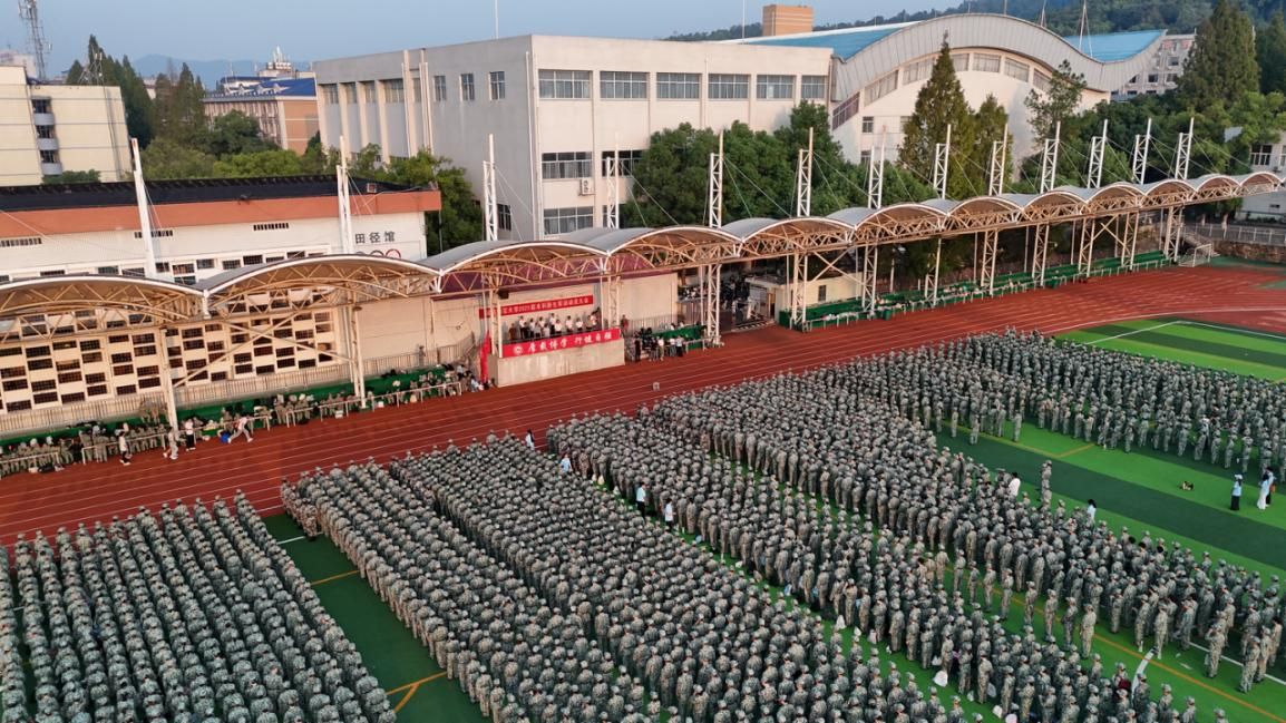 (供稿 学生工作部)10月9日清晨,伴随着雄浑激昂的《义勇军进行曲》,太阳成集团五校区同升国旗仪式暨2025级本科新生军训动员大会举行。副校长、校国防教育工作领导小组副组长王辉出席大会并讲话。学生工作部、武装部部长、军训团团长陈文雄,各学院党委副书记、新生辅导员及九千余名2025级本科新生参加大会。