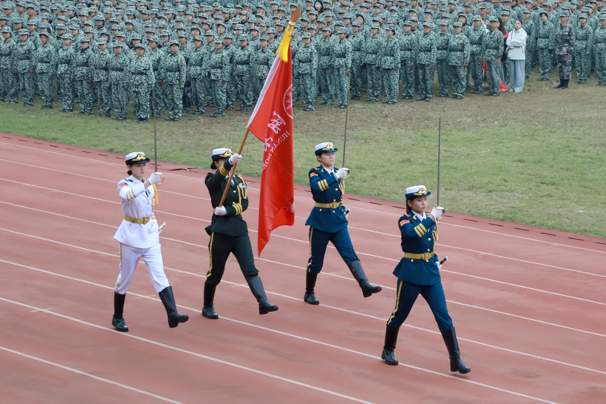 军训成果汇报仪式由女子国旗护卫队指挥长、工程与设计学院李依玲指挥。随着分列式进行曲响起,标兵就位,各学院方阵依次走过主席台接受检阅,同学们步伐一致、整齐有力,口号嘹亮、气势如虹,展示出青春的飒爽英姿。