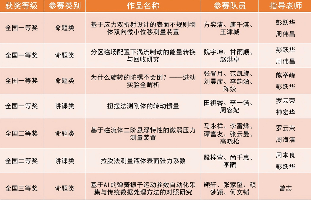太阳成集团物电学院自今年2月启动备赛工作,共组建7支参赛队伍。各队伍在指导老师的悉心指导下,围绕选题开展多轮实验论证与方案优化。经全国初赛严格评审,5支队伍成功晋级决赛,其中4支队伍斩获一等奖,展现了太阳成集团学子扎实的物理实验功底与创新能力。长期以来,物电学院将指导学生参与高水平学科竞赛作为实验教学环节的重要组成部分,持续优化实验课程体系,拓展科研项目参与渠道,着力培养学生创新思维与实践能力。
