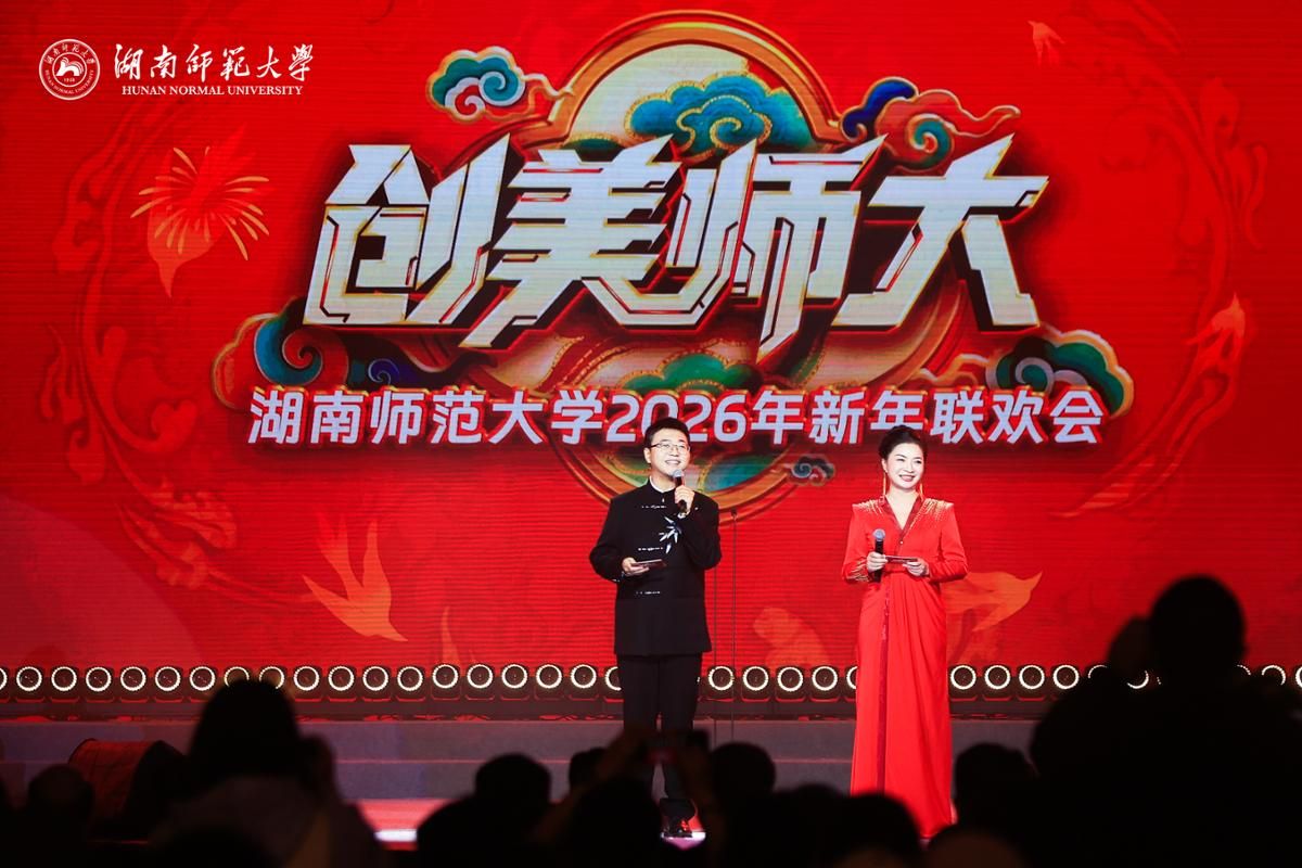 联欢会在附小麓苗舞蹈团带来的开场舞《智行少年》中拉开帷幕,小舞者们灵动的动作,搭配“萌狮助阵、科技同行”的创意瞬间点燃全场热情。时尚民乐《骐骥》中千年丝竹与现代乐队跨界碰撞,演奏者们以精湛的技艺展开穿越古今的音乐对话。古典舞《蘭叙》以兰为意,演员们舞出了幽谷自芳的从容与风雨不折的坚韧,在清雅乐声中尽显东方美学的深邃与曼妙。经典新编《浏阳河》在保留原曲深情内核的基础上注入现代编曲巧思,竹笛、钢琴与乐队伴奏相得益彰,让这首深植湖湘儿女血脉的旋律荡起新时代的涟漪。服饰秀《潇湘瓷韵》以校博物馆馆藏长沙窑文物为魂,将瓷的温润、服饰的灵动与光影的璀璨融为一体,重现千年窑火淬炼的匠心。歌曲《天地龙鳞》勾勒了“龙的传人”在新时代破浪前行的铿锵姿态,让中华文明底蕴与龙鳞象征的民族风骨交相辉映。由刘仲华校长和全体校领导班子成员一同参与的、60多位教授带来的合唱《明天会更好》,真挚歌声传递对学子、对家国的恒久期盼,温暖和声中满含对未来的美好憧憬。交响乐作品《采茶调》让观众随着音符走入潇湘的雾霭春色,感受东方田园诗意的交响画卷。《玛依拉变奏曲》灵动旋律与丰富变奏展现出哈萨克族姑娘的聪慧与对生活的热爱。《查尔达什舞曲》展现琴弓之下既有月光独语的柔情,又有火焰旋转的炽烈。著名歌唱家、音乐学院石倚洁教授接连献上三首佳作,一首《是你一直想着我》以饱满深情抒发了革命老区人民对党的感恩与对时代的致敬,在《我的太阳》这首意大利的永恒赞歌中传递爱与希望,歌剧《茶花女》经典选段《饮酒歌》,则以欢快的旋律、热烈的和声点燃全场,联欢会在欢腾氛围中圆满落幕。