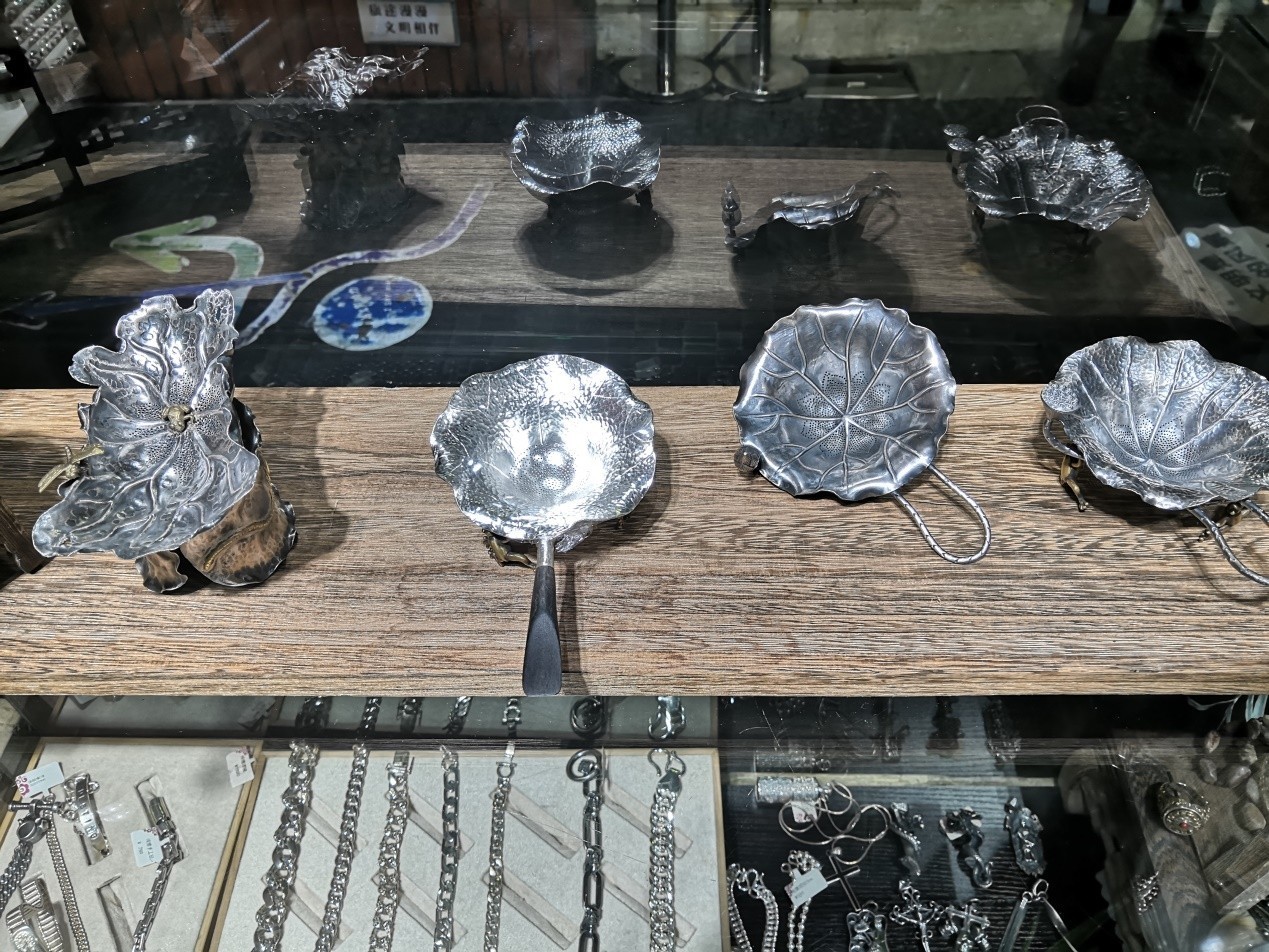 除此之外,实践团在上海市非遗协会示范基地实地体验了金银细工与印泥的制作技艺,了解到海派艺术以及海派手工技艺在工艺制作、创新设计、传习教授等方面的发展情况。上海这座国际大都市对于非物质文化遗产体现出巨大的包容性,使得海派非遗文化艺术得以在此展现出独特的魅力。