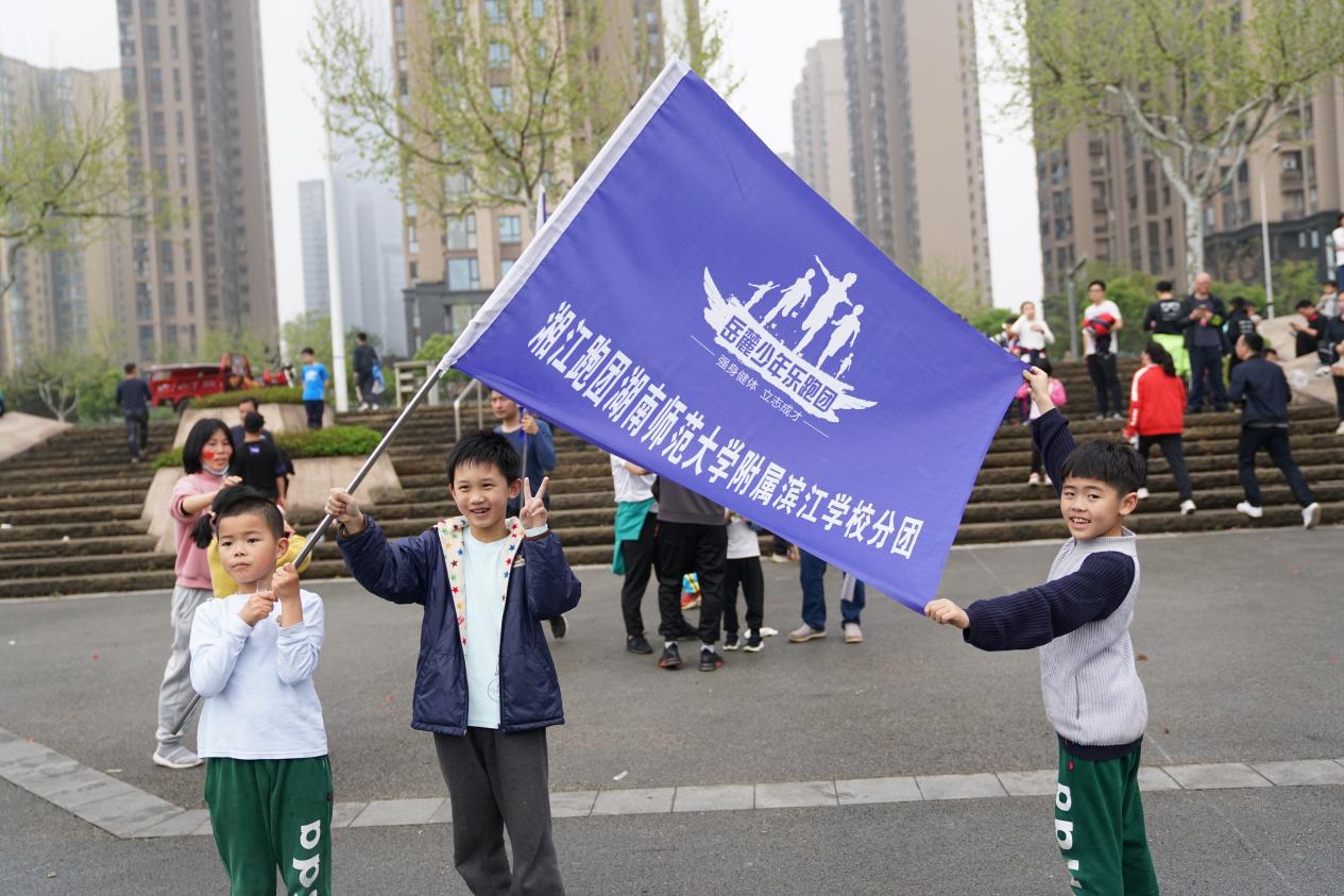 滨江小学校长陈雷率领孩子们一马当先,青春飞扬。