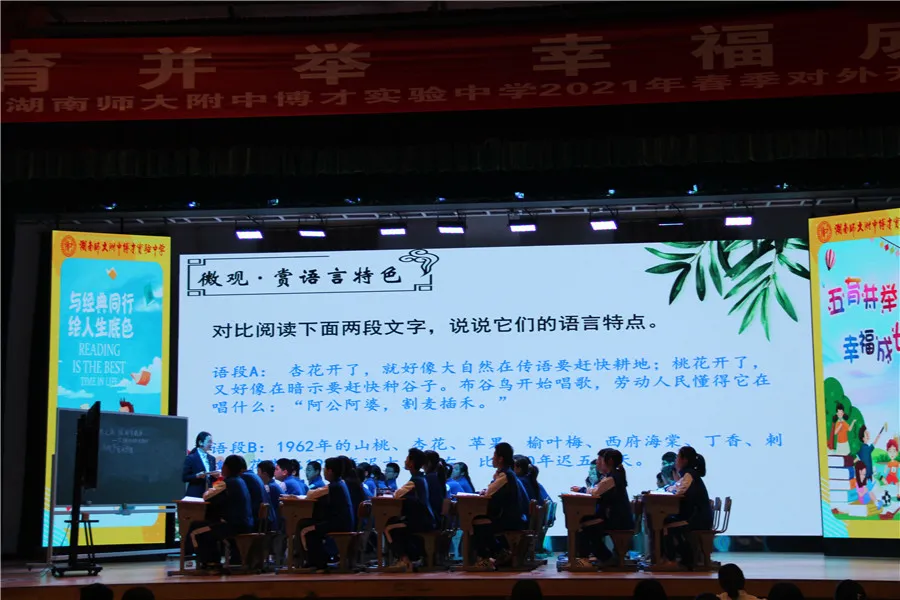 每堂课、每间教室都挤满了来校听课的老师,过道里走廊间无处不是认真听课的身影。一堂堂有质量、有底气、有灵魂的精品课程,集中地展现了湖南师大附中博才实验中学课程育人、环境育人、活动育人、管理育人的风格以及幸福教育理念。“这样的开放日让人惊叹。”“孩子们朝气蓬勃,好一副恰同学少年的风貌!”“今天的课听得非常爽!”活动结束后,专家、来宾们对学校的育人模式表示高度肯定与赞许。