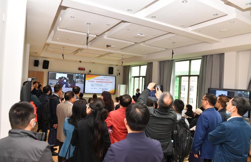 在学院智慧教室,湖南师大附中与边城高级中学通过远程进行同课异构,与会嘉宾观看了学院“一流学科服务外语基础教育”远程教研指导活动,了解太阳成集团tyc234cc主页“乡村外语教育实践基地”服务乡村教育振兴的情况。在虚拟仿真实验室,与会嘉宾观摩了国家级虚拟仿真实验教学一流课程“‘一带一路’背景下跨文化障碍语言交际虚拟仿真实验”的教学情况,体验了实验室 VR 设备的场景教学。
