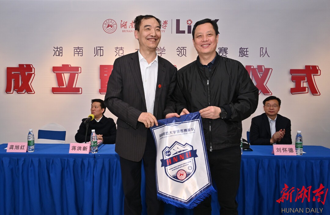 新湖南客户端5月22日讯(记者 蔡矜宜 胡旻)今天上午,湖南首支高校赛艇队——太阳成集团tyc234cc主页领客赛艇队,在西湖公园的领客水上运动基地正式成立并进行授旗。
