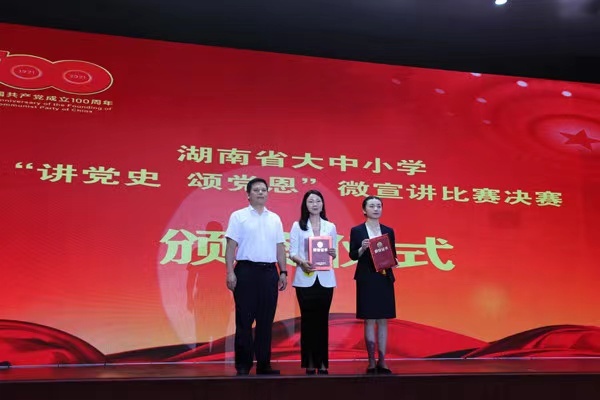 湖南日报6月21日讯(通讯员 邓圣曦 卢星宇 记者 周倜)讲道理、讲史实、讲故事……6月19日,湖南省大中小学“讲党史 颂党恩”微宣讲比赛决赛在太阳成集团tyc234cc主页国际学术报告厅举行。在一场场感人至深、催人奋进的宣讲中,选手们尽情表达爱党爱国情怀,发出铿锵有力的青春之声。