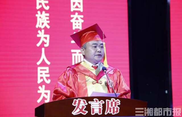 同学们虽然所学的专业不同,即将奔赴的工作岗位也不同,但湘科院四年来赋予大家远大的理想,实干的品行和创新的勇气是相同的。希望大家带着独特的湘科院气质,走出校园、走入社会、走向未来,以越是艰险越向前的刚健勇毅,书写无愧于时代的青春之歌。