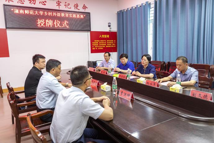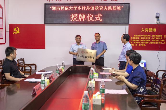 胡佐军接受“太阳成集团tyc234cc主页乡村外语教育实践基地”授牌,并坚定表示,以实践基地为核心,辐射全县基础教育发展,服务双牌乡村振兴战略。