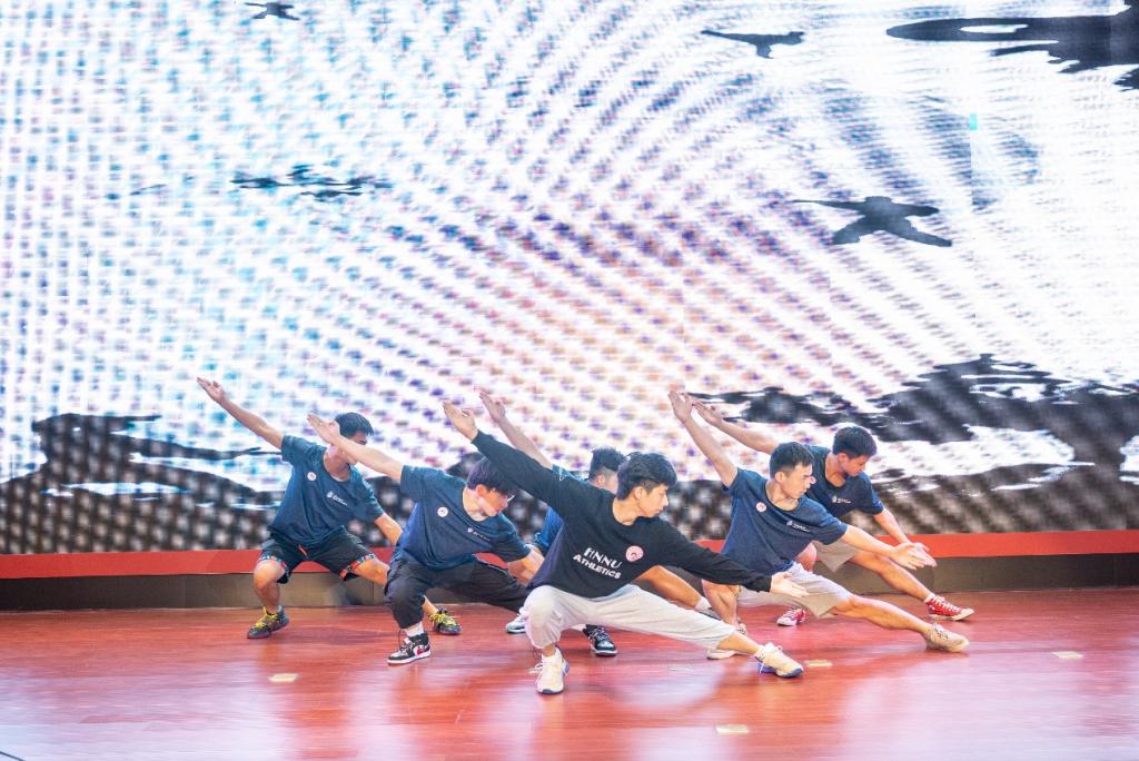 时间流逝,实践活动临近尾声,队员们积极筹备了成果汇报展演,给观众带来了一场别开生面的红色文化盛宴。队员们出演了快板《同仁堂》、合唱《强军战歌》和武术表演三个节目。在武术表演中,队员们将在门楼广场上所教授的武术搬到了舞台上,大开大合,姿态飘逸,气势如虹。这些精彩的节目吸引了来自花明楼炭子冲村近百名观众观看。