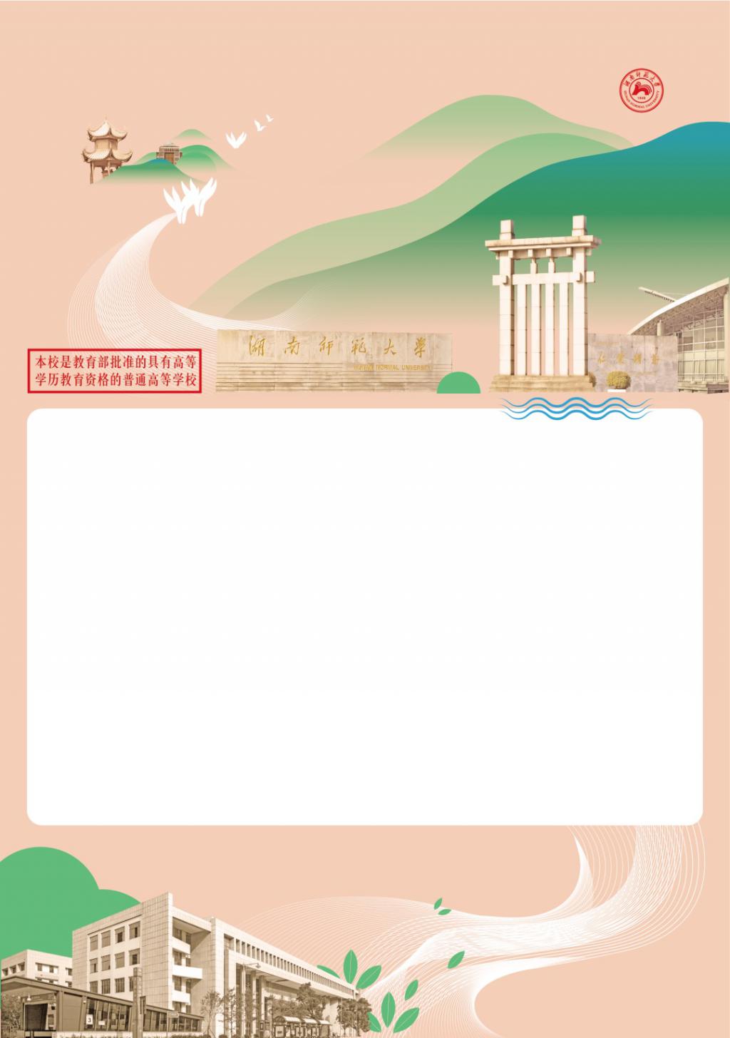 通知书内页以岳麓山和湘江水为背景,以阶梯图案为衔接,象征“登高”寓意步入师大的新生即将开启崭新的生活。