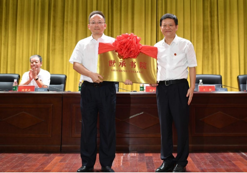 校党委书记蒋洪新代表学校向书院院长刘子兰授“世承书院”院牌。