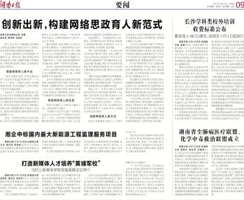 2019年,湖南省高校网络思想政治工作中心成功落户该校,中心网站、微信公众号和微博号随之先后上线,与国家级网络平台无缝对接。