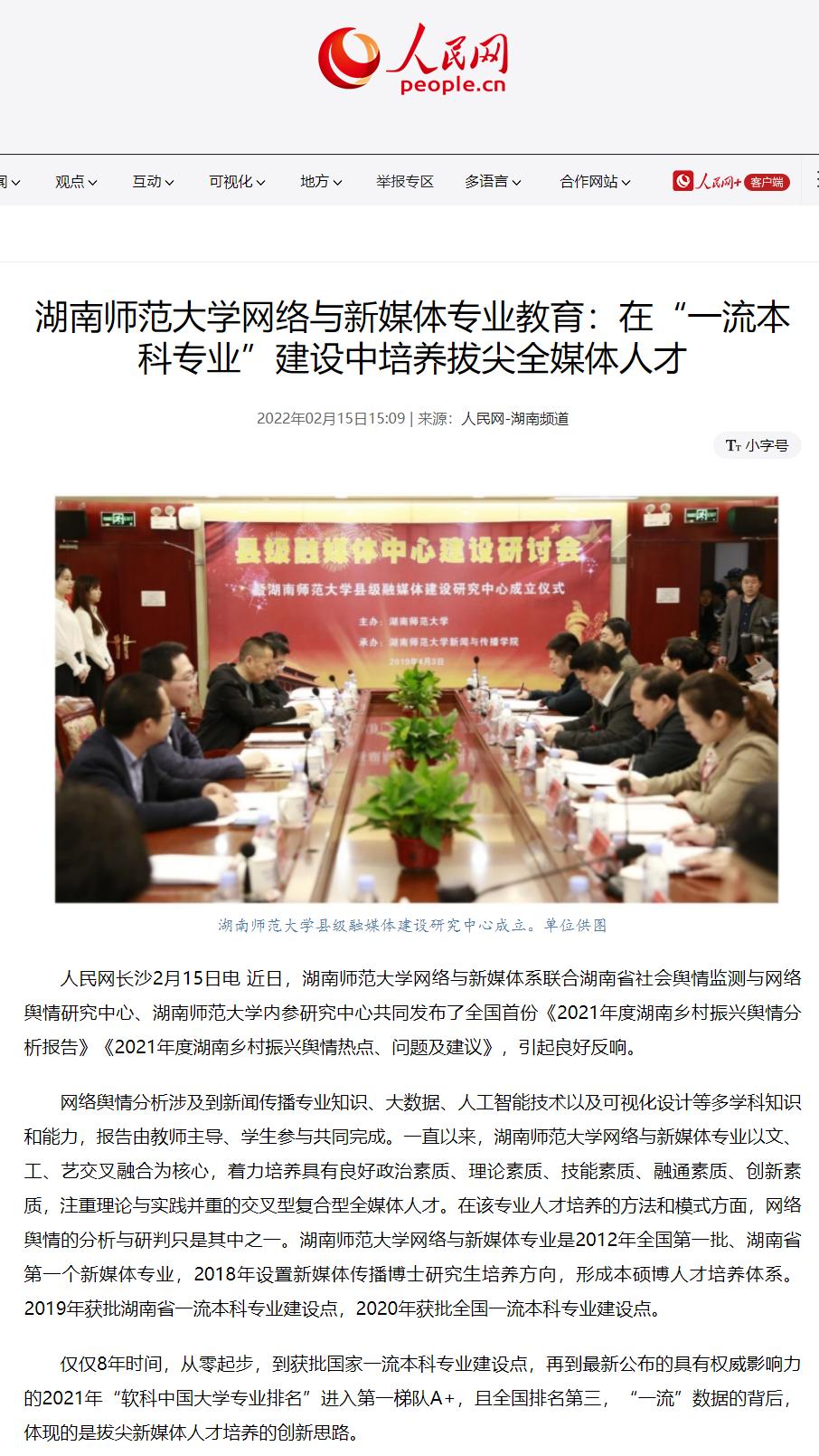 人民网:《太阳成集团tyc234cc主页网络与新媒体专业教育:在“一流本科专业”建设中培养拔尖全媒体人才》