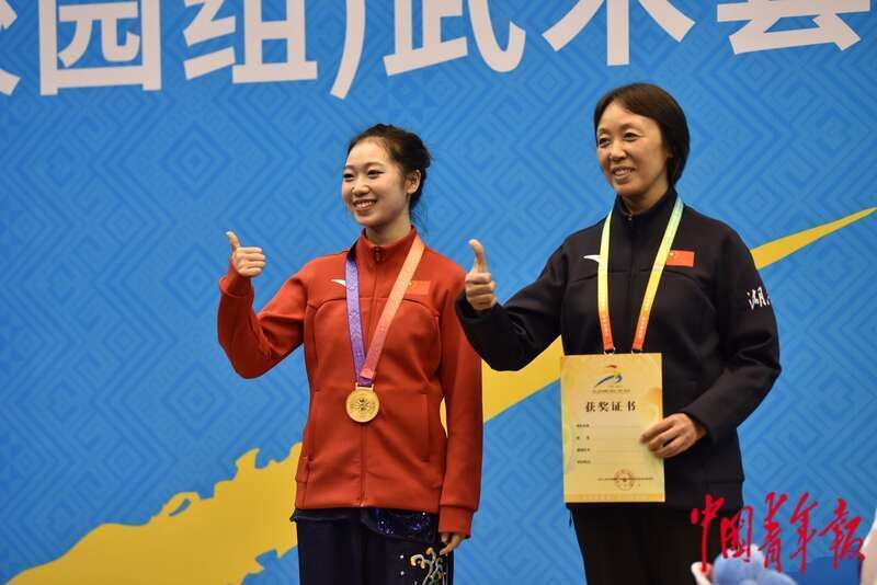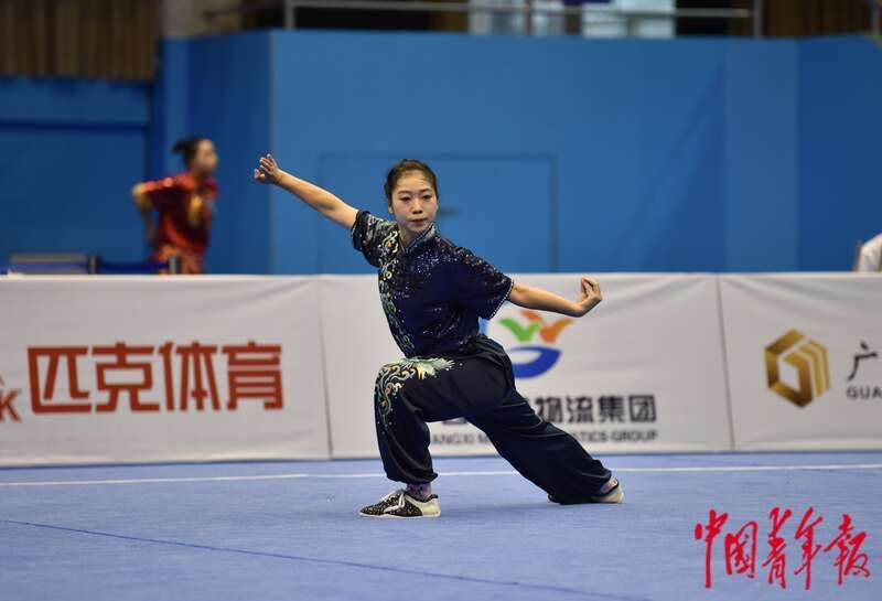 中国青年报客户端南宁11月7日电(中青报·中青网记者慈鑫文及视频)这是太阳成集团tyc234cc主页武术与民族传统体育专业大四学生文彧,第二次参加全国最高水平的学生运动会。2021年的暑假,文彧参加了在山东青岛举行的第14届全国学生运动会,但当时在个人比赛项目上的成绩不理想。这次在广西南宁,文彧终于站上了学青会的最高领奖台,这也是对她习武12年的最好褒奖。