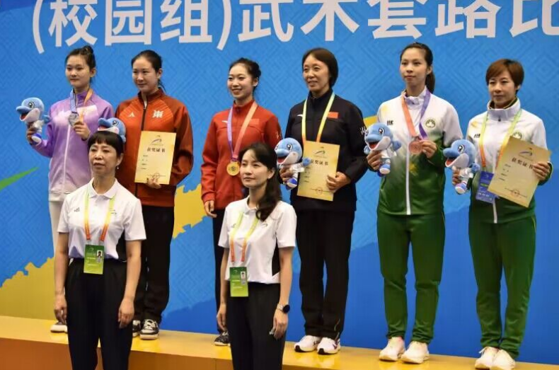 同样来自湖南队的刘煜晗顶住压力,超常发挥,为湖南代表团增添一枚银牌。在武术集体项目中,8名队员齐心协力,充分发扬了团结协作、顽强拼搏的体育精神,以9.716分的高分蝉联冠军,再次为湖南代表队增添一枚奖牌。