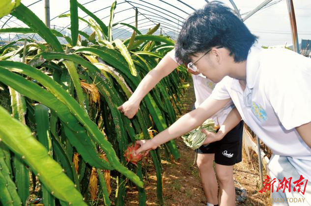 基地里,大片火龙果长势喜人。“沅梦星坪”实践团成员们仔细观察火龙果、西瓜的生长状况,向种植户请教种植技术、田间管理等方面的问题。