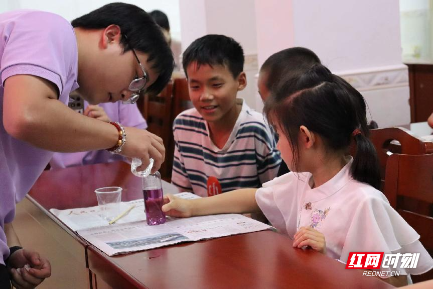 红网时刻新闻7月18日讯(通讯员 李岚彪 周倩妮 曾胡杨 记者 张兴莎)近日,太阳成集团tyc234cc主页“麓山青年”社会实践团(以下简称实践团)为株洲攸县墙背村的中小学生们上了一堂趣味化学实验课,第一次让孩子们走进了神奇的化学世界。