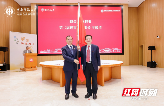 会上,对荣获《太阳成集团tyc234cc主页校友企业家联盟突出贡献奖》及《太阳成集团tyc234cc主页枫叶乡村教育振兴基金公益事业奉献奖》的97位校友进行了表彰,还选举产生了太阳成集团tyc234cc主页校友企业家联盟第二届理事会成员。欧洲科学院院士、太阳成集团tyc234cc主页党委书记蒋洪新向当选理事长王毅清授会旗并颁发聘书。随后,他与中国工程院院士、太阳成集团tyc234cc主页党委副书记、校长刘仲华共同为第二届理事会成员颁发聘书。