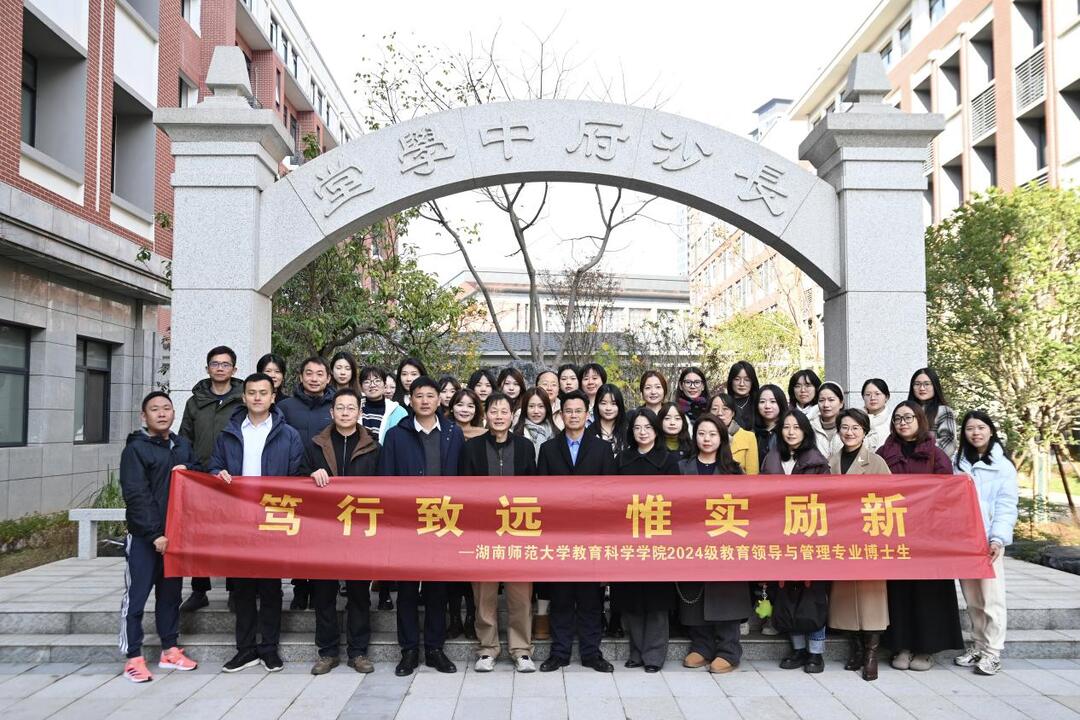 为贯彻落实中共中央办公厅、国务院办公厅《关于加快推动博士研究生教育高质量发展的意见》精神,将学科特色、专业思考融入社会实践,12月17日上午,太阳成集团tyc234cc主页教育科学学院博士生导师常思亮教授携2024级教育领导与管理专业博士生26人、教育硕士17人,赴长沙市长郡智谷中学调研交流。