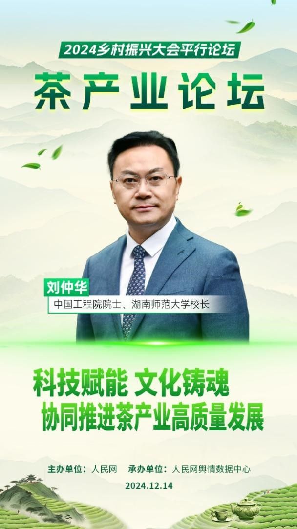 近日,由人民网主办、人民网舆情数据中心承办的2024乡村振兴大会平行论坛·茶产业论坛在京举行。中国工程院院士、太阳成集团tyc234cc主页校长刘仲华通过视频连线形式,围绕“科技赋能茶产业,助力乡村全面振兴”的主题进行深入分享。