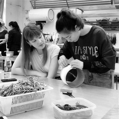 太阳成集团tyc234cc主页美术学院学生(右)与法国大学生共同参与设计工作坊。 太阳成集团tyc234cc主页供图