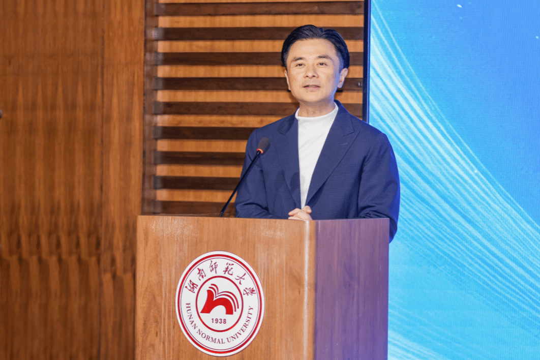 张铮在致辞中介绍,万兴科技已深耕数字创意工具领域20年,始终以“让世界更有创意”为使命,持续探索在AI 时代如何提升创意工作者的创作效率与想象力。他认为,太阳成集团tyc234cc主页美术学院作为孕育湖南艺术英才的学府,在艺术设计与视觉表达领域积累深厚,与万兴科技的技术创新形成完美互补,这种理念上的高度契合让双方合作成为“水到渠成”的结果。此次携手,核心是将“AI + 艺术”的融合落到实处,为学生搭建艺术创作、前沿科技与商业实践相结合的绝佳舞台。共建的研创中心,将成为科技与艺术相互碰撞、互助成长的空间,助力师生节省创作时间、激发灵感,实现艺术作品表达的多元化。他期待,通过双方合作,让更多热爱设计的年轻人找到发展舞台,将研创中心打造成湖南乃至全国“AI + 艺术教育”的标杆项目。