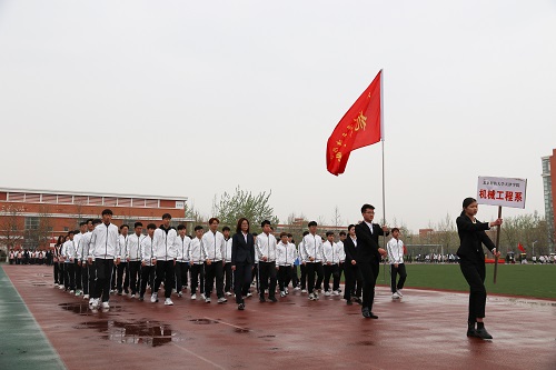 4月13日,beat365第十三届师生运动会在西操场隆重举行。党委书记、院长王斌,副院长张永锋,党委副书记白亮、孟菲菲,财务总监王俊敏,院长助理汪飞星,体育部主任吴铁桥,教务处处长张建华,财务处处长李广庆,后勤处处长张卫,院办主任郭雅娟,招生就业处处长柯瑜,基建产业处副处长孟祥瑜,招生就业处副处长、就业指导中心主任罗富臣,人事处副处长王军,学生处副处长田勇及各系党总支书记出席了开幕式。团委书记殷实主持开幕式。