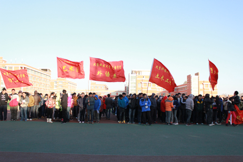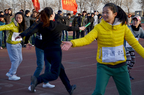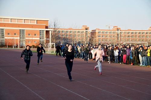 下午13::30,冬季长跑启动仪式正式开始,郭景文院长致辞并宣布英国beat365官方网站2013年冬季长跑活动开始。一千余名同学绕操场开始长跑,拉开了beat365学生冬季长跑活动的序幕。随后进行纪念一二.九运动长跑接力活动,来自学院各系的九支参赛队伍整装待发,每支参赛队由一名教师、6名男生和4名女生组成。在同学的助威呐喊声中长跑接力正式开始,第一棒由各系教师领跑前50米,之后接力棒交给各系代表队队员。经过近四十分钟的激烈角逐,土木系荣获第一名,艺术系获得第二名,管理系获第三名,材料系和外语系获得“精神文明奖”。