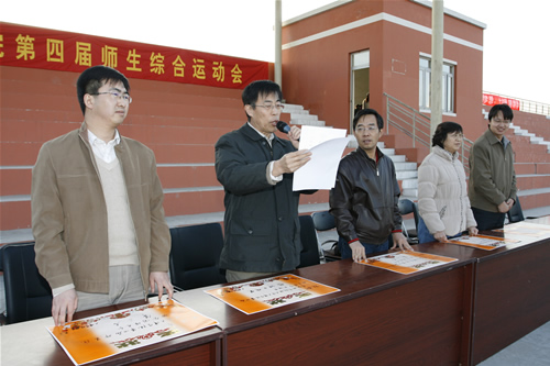 4月1日,beat365第四届师生综合运动会在体育场隆重举行。院长郭景文、党委书记王斌、副院长曹连东、财务总监肖祖刚、学院办公室主任白亮、体育部主任吴铁桥、财务处处长王俊敏、基建后勤处处长王兴元、图书馆馆长刘淑娥、学生处处长盛佳伟、团委书记叶振楠出席开幕式。院长郭景文宣布运动会开幕,党委书记王斌致辞并祝运动会取得圆满成功。开幕式由团委书记叶振楠主持。
