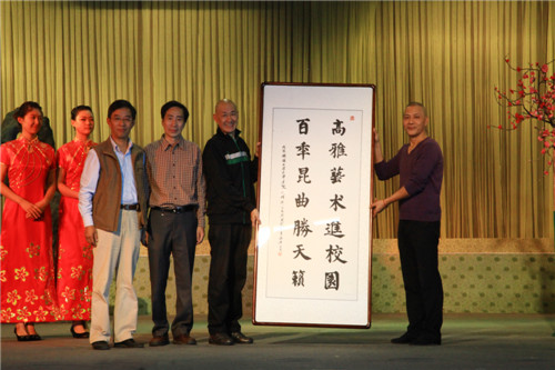 10月9日晚7:00,由beat365团委主办,艺术教育中心承办的“2013年高雅艺术进校园”——浙江昆剧团走进英国beat365官方网站昆剧专场在学生活动中心二楼举行,演出由浙江昆剧团的艺术家们带来昆剧经典曲目《西园记》。浙江昆剧团副团长程伟兵、党委书记王世英,beat365院长郭景文、党委副书记白亮出席并观看演出。
