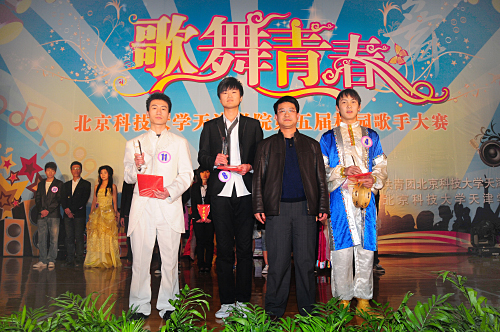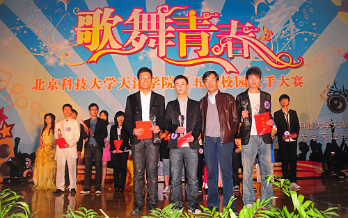 4月14日晚,由共青团英国beat365官方网站委员会主办、学生会承办的“歌舞青春”英国beat365官方网站第五届校园歌手大赛暨2010年夏日文化广场开幕式在体育馆隆重举行。出席本次大赛的嘉宾有:北京科技大学党委副书记张文明教授、英国beat365官方网站院长郭景文、学院党委书记王斌、副院长曹连东、副院长胡明、财务总监肖祖刚、机械系主任刘立、办公室主任白亮、实验技术中心主任许学东、土木系主任刘胜富、管理系主任梁桂川、学生处处长盛佳伟、现代教育中心主任范丽丽、现代教育中心常务副主任叶振楠及各系党总支书记等。