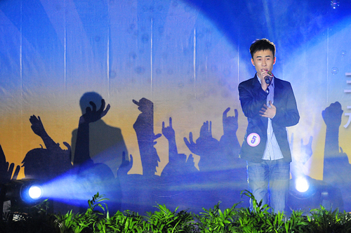 决赛当晚现场气氛十分热烈,吸引了众多观众到场。参赛选手亲友团热情洋溢,或手持海报或挥动荧光棒或大声呐喊,为他们支持的选手加油助威。每组选手出场前,会播放VCR介绍参赛选手,引出接下来的选手展示。由金融0902班的郭梦佳带来的一曲曲风优美的《崇拜》拉开了当晚决赛的序幕。随后来自土木0704班的焦禹禹带来自弹自唱的原创歌曲《我的名字叫焦禹禹》,更让所有观众对他的创作才华赞不绝口。后面出场的选手也都带来了精彩的演唱,来自国贸0807班的5号选手徐世杰的一首深情的《吻别》,几乎打动了在场的所有观众,并获得96.62的高分。第一组选手演唱完毕,由信息系教师啜吴昊献上的一首经典歌曲《母亲》,让现场气氛更加热烈。