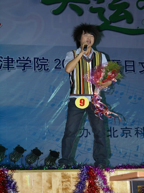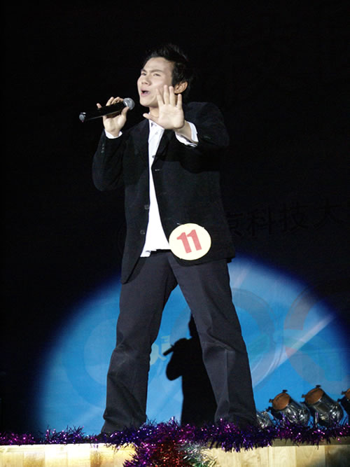 07级辅导员、北京科技大学第五届校园歌手大赛亚军啜吴昊老师为同学们献上歌曲《滚滚长江东逝水》。