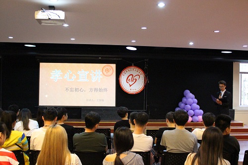 5月8日18点,孝心社主办的“爱要大声说出来”孝道主题教育系列活动在学生活动中心举行,本次活动走进艺术系声乐1402班。