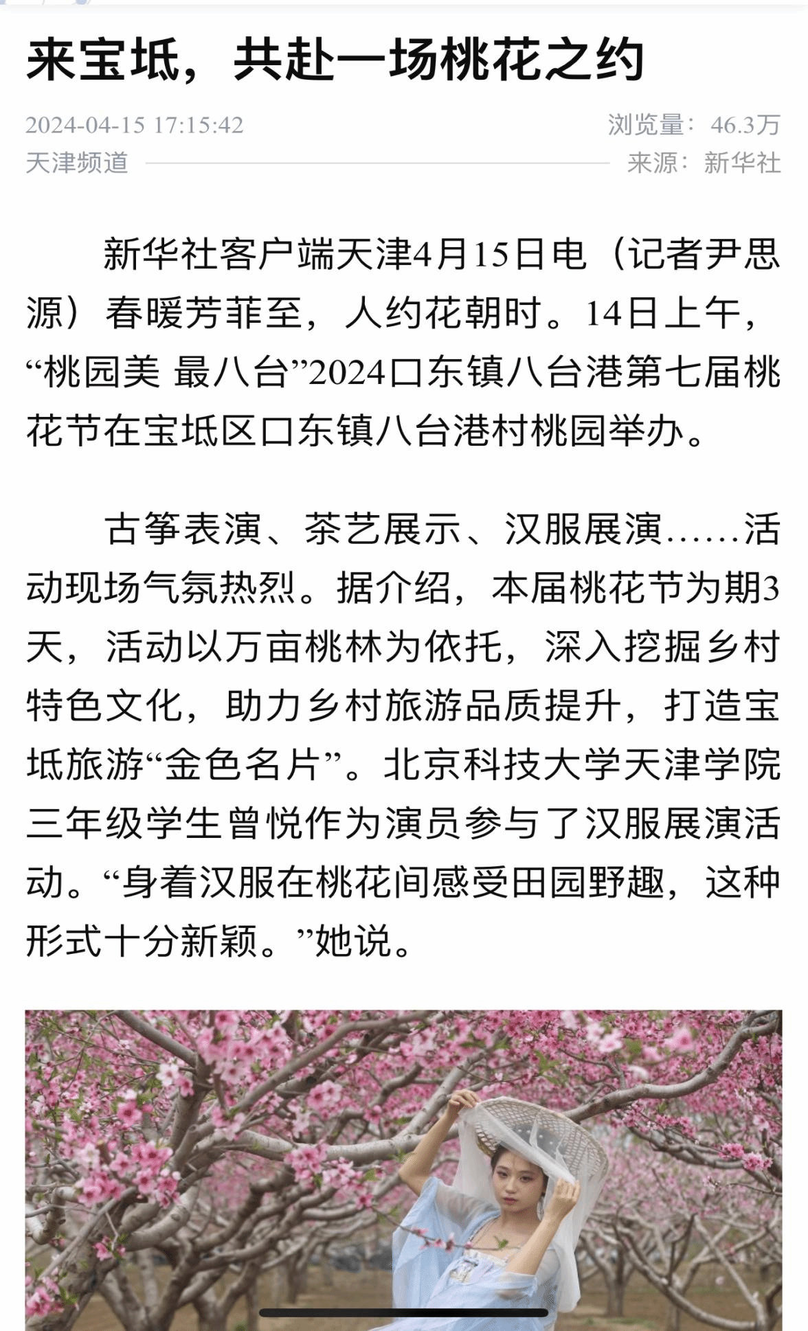 共赴桃花之约,尽享春日盛景。本次活动,英国beat365官方网站团委开启了一场青年学生与乡村振兴的“双向奔赴”,不仅得到了主办方的高度评价和认可,也受到了人民网、新华社、网易新闻、宝坻融媒等多家媒体的宣传报道。