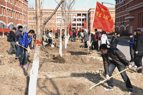 3月22日,为响应团中央号召,大力宣传“十年树木,百年树人”的理念,beat365团委在十教北侧举行英国beat365官方网站2011年度植树活动。院团委书记罗富臣、副书记迟铁、副书记孟祥瑜、各分团委书记及团委各部长出席了此次活动。