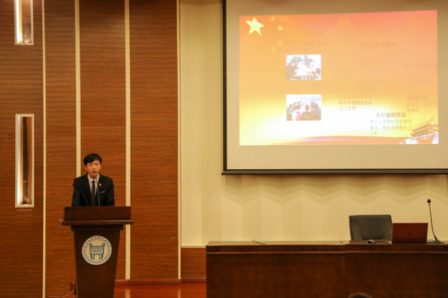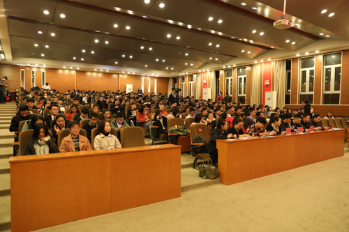 活动开始前,第九期团校师生向南京大屠杀遇难者同胞集体默哀。此次班级成果汇报分为“十九大”理论知识竞赛和班级风采展示两个环节。在“十九大”理论知识竞赛环节,全体学员及班主任通过扫描二维码进入手机网络答题。此次理论知识竞赛紧紧围绕党的十九大报告、习近平新时代中国特色社会主义思想等方面内容开展,营造学习贯彻党的十九大精神的浓厚氛围。班级风采展示中,团校14个班结合PPT及视频分别从班级介绍、自主学习、社会调研、素质拓展等多方面进行展示。每个班级学生代表的演讲、视频、风貌展示都颇有特色,通过不同的角度将锐意创新、敢于担当等新时代大学生骨干的精神面貌和团结奋进、青春活力等新时代青年大学生集体的风采最大程度的展现给大家,彰显出团校班级的凝聚力和团干部蓬勃向上的朝气。通过班级风采展示使学员们更深刻地体会到作为共青团员的光荣与职责。