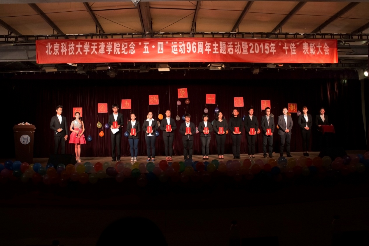 活动在嘹亮的国歌声中拉开帷幕,第一个篇章为重温“五•四”历史,传承“五•四”精神。一段简短的视频带我们进入到那峥嵘岁月,96年前,一群热血青年掀起了一场轰轰烈烈的爱国运动,96年后,一群有志青年勇担大任,为祖国的未来做出了自己应有的贡献。朗诵《血色青春》,体现出在峥嵘岁月中,无数革命先烈抛头颅、洒热血,换来我们今天的幸福生活。第二篇章为共展青春风采,喜迎天院华诞。戏剧表演《我的青春在触电》、歌曲《红日》、舞蹈《咏春》体现出青春的活力,向我们完美演绎出青春的美好。活动期间对“十佳班长”、“十佳团支书”、“十佳宿舍”、“十佳学习标兵”等先进个人和集体进行了表彰。